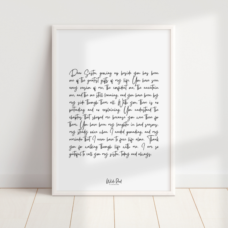 Dear Sister captures the bond of growing up together. The laughter, the chaos, the shared memories no one else quite understands. A heartfelt gift for birthdays, weddings, or just because she deserves to know how much she means to you.